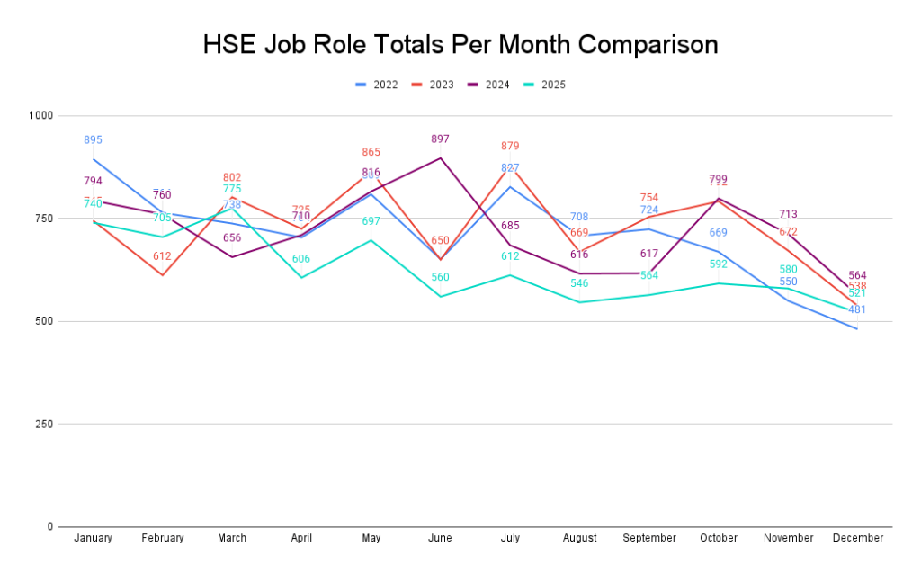 Compared with 2022-2024, 2025 saw the fewest HSE roles advertised.