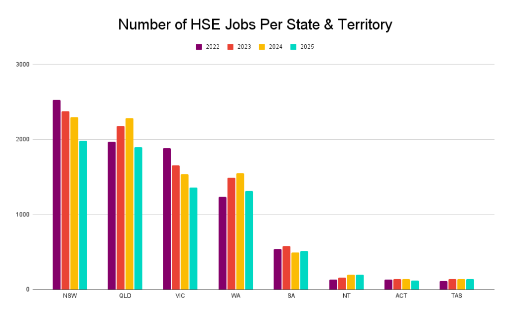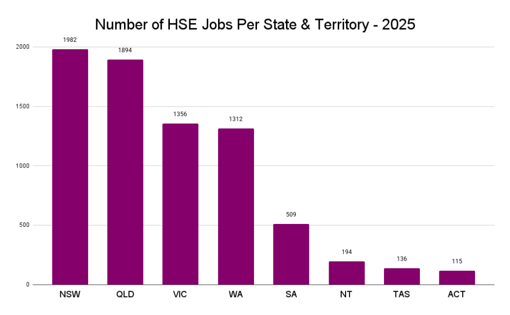 If you follow us on LinkedIn, you’ll know we regularly track and analyse the health and safety job market. As part of this process, we use data from Australia’s most popular job boards, SEEK and LinkedIn. We then cross-check this data against reports from ABS, SEEK, and other industry specialists. Finally, we triple-cleanse the data.